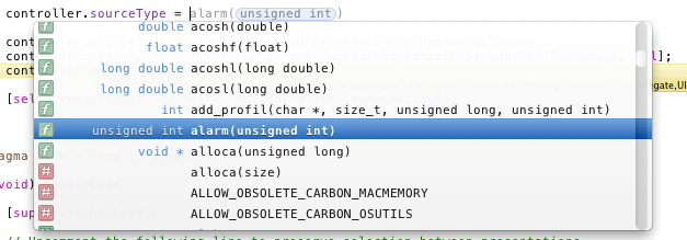 Fine, I happen to know that enums generally start with the name of the control. I will manually type in ‘uiimagepickercontrollers’, to finally get a list of the available UIImagePickerControllerSourceTypes. All in all, it’s a horrible user experience.