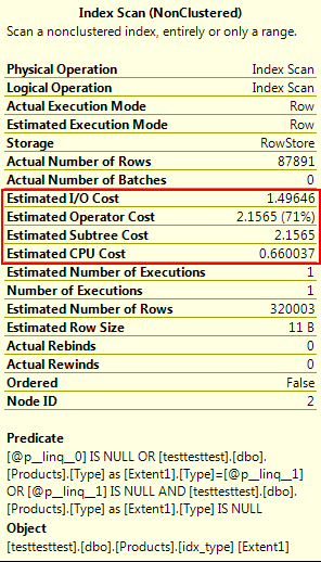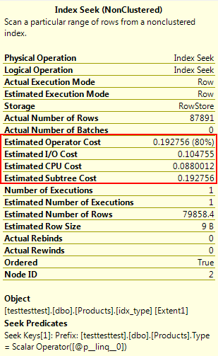 You can see that compared to the Index Scan above, the Index Seek is literally an order of magnitude cheaper:
