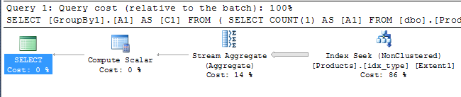 With the index in place, we’ll modify our GetProductCounts() method to support filtering on product type. We can do this easily by passing in a nullable int containing the product type to filter on, or null if we don’t want to do any filtering.